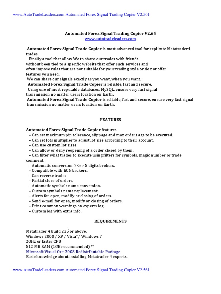 Automated Forex Signal Trading Copier V6 5 Manual Order Exchange